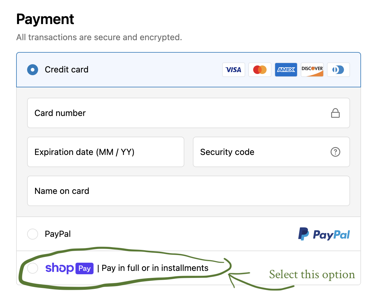A – Yes! Here’s how to do it. When you click through to the shop page to register, you’ll see several cohorts to choose from. First, choose your desired cohort. Then, under the “add to cart” button, click “more payment options.” That takes you to a payment window where you’ll see “Shop Pay” as an option. Click on Shop Pay to configure your desired payment plan.